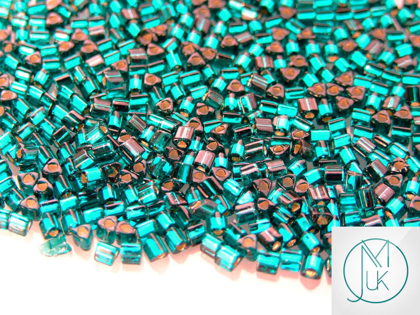 10g 27BD Silver Lined Teal Toho Triangle Seed Beads 8/0 3mm