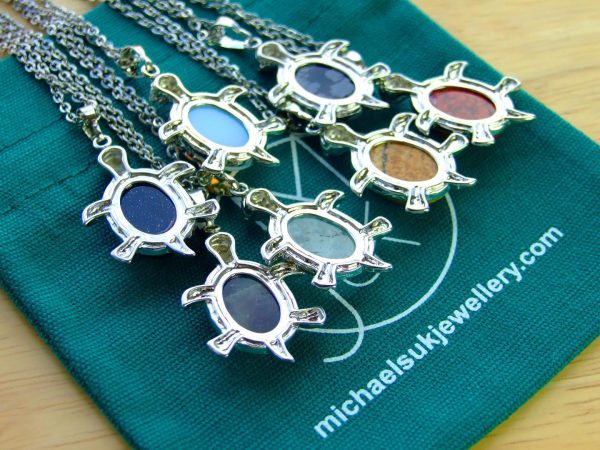 Beautiful Natural Gemstone Turtle Pendant Necklace with stainless steel chain.
